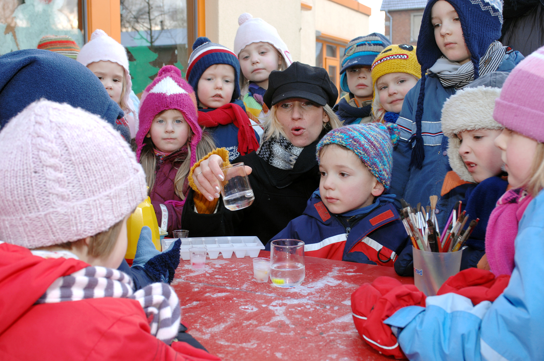 in diesem Monat auch die Kleinsten. In den Kindergärten der Kita Doch wählen Kinder ihren eigenen Weg, diese Phänomene zu verstehen. In der Kita „Löwenzahn” entdecken die Kleinen den Winter durch sachbezogenenes Experimentieren. „Wir arbeiten nach dem lebensbezogenen Ansatz“, so die Leiterin Gabriele Will. Das bedeutet, die Kinder lernen in der Aktion selbst auf spielerische Weise. Beim Thementag „Experimentieren mit Wasser und Schnee“ erkennen sie durch eigenes Tun, Vergleichen und Hinterfragen, wie sich die winterliche Natur verhält. Durch Gefrierproben, bei denen ein Wasserglas bei Minusgraden nach „Uns ist es wichtig, die Kinder in ihrem