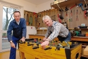 Die guten Seelen in der Kita? Schwerin • Sorgfältig justiert Reinhard Moll die Torwartstange am Kickertisch, der in seiner Werkstatt in der Kita „Anne Frank“ steht. Hier noch ein Tropfen Öl, da noch eine Schraube nachgezogen, ein kurzes Testspiel gegen seinen Kollegen Horst Schlensog - fertig. Doch die nächsten Aufgaben lassen nicht lange auf sich warten...
